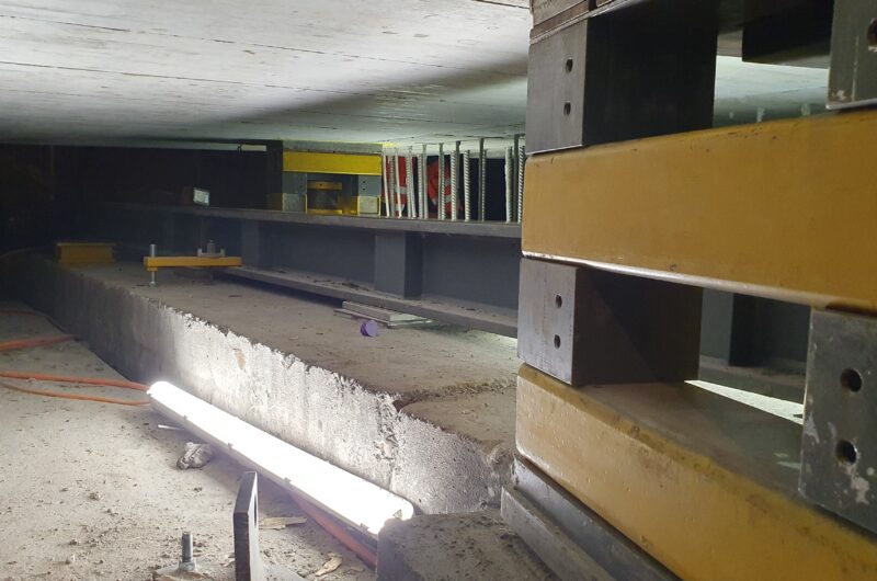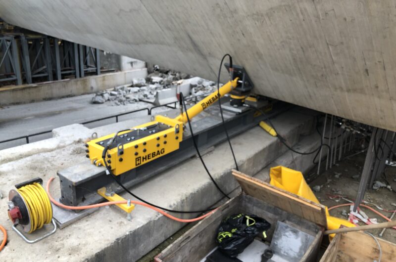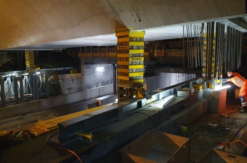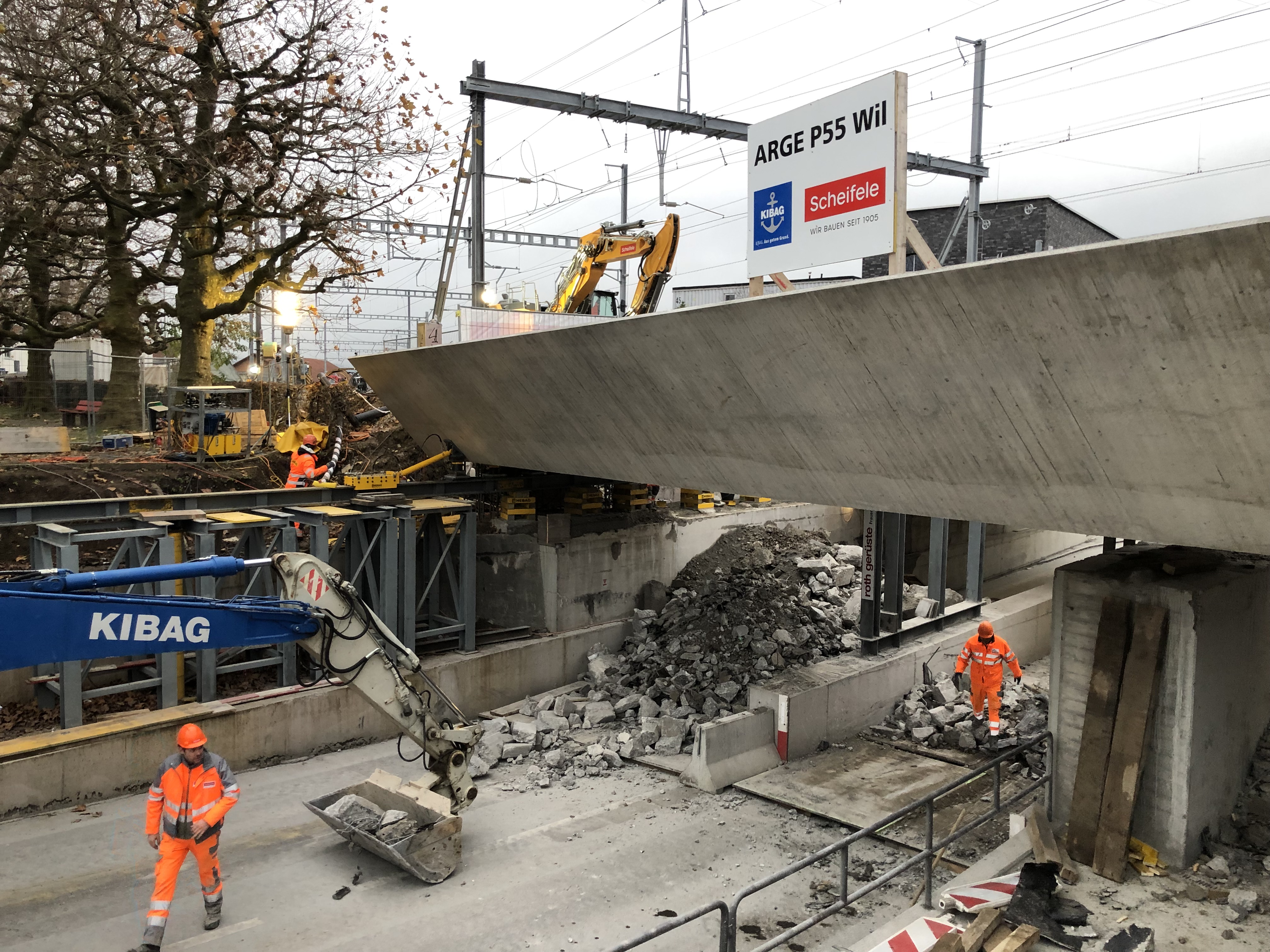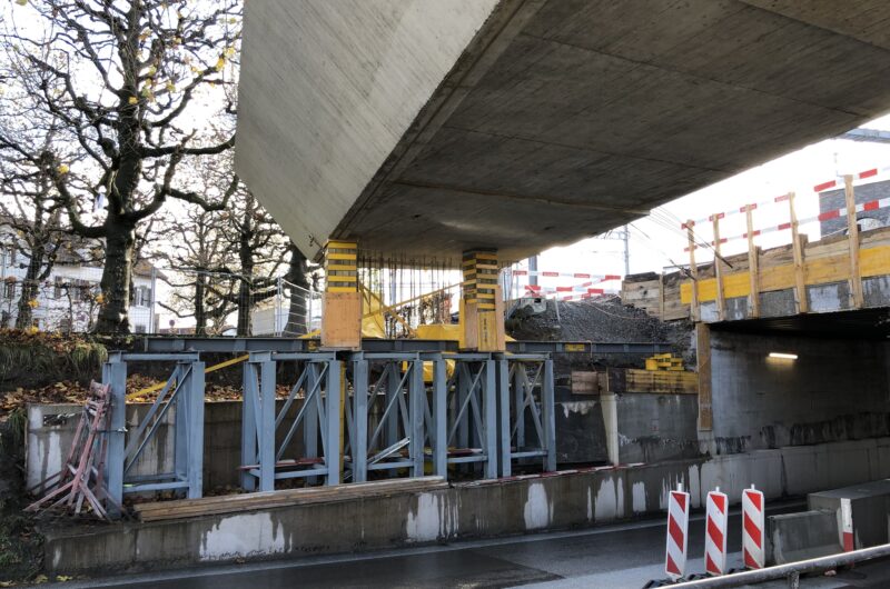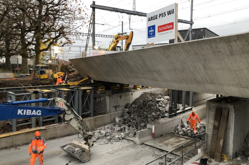 EBB Hubstrasse, Wil Die 230 Tonnen schwere Brücke wurde um 1.35 m abgesenkt und anschliessend um 10.5 m quer verschoben.